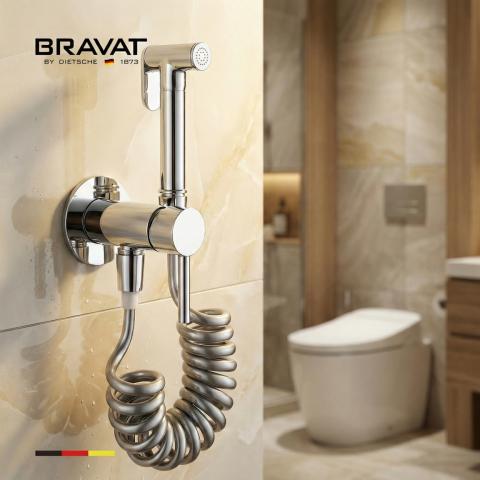 Гигиенический душ со смесителем с пружинным шлангом BRAVAT D9190CP-SW
