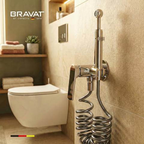 Гигиенический душ со смесителем с пружинным шлангом BRAVAT D9193CP-SW
