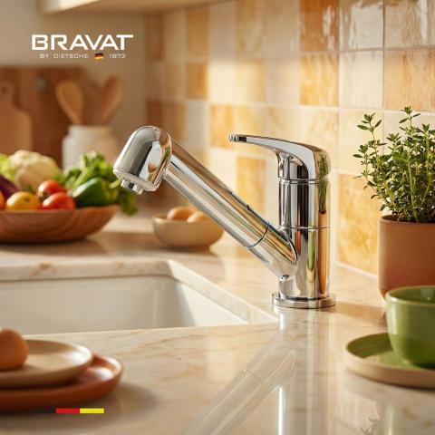 Смеситель для кухни с выдвижным изливом цвет хром BRAVAT F7802933CP-SW