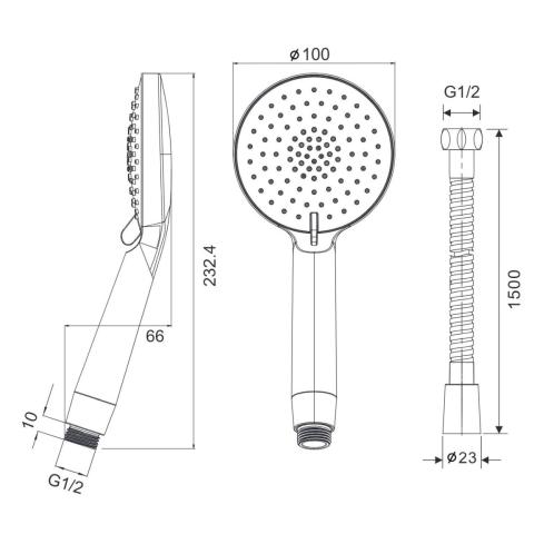 Набор для душа с лейкой и шлангом BRAVAT D2114CP-SW