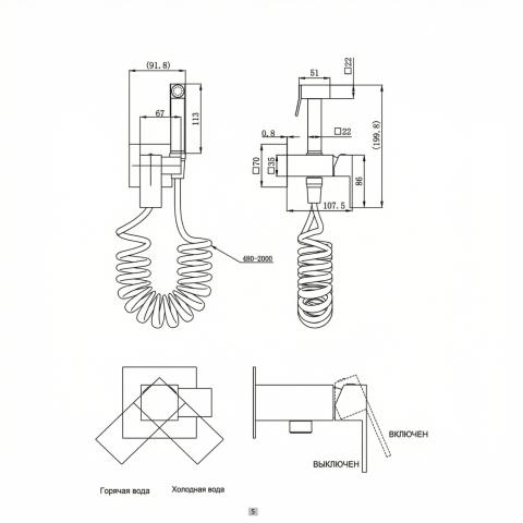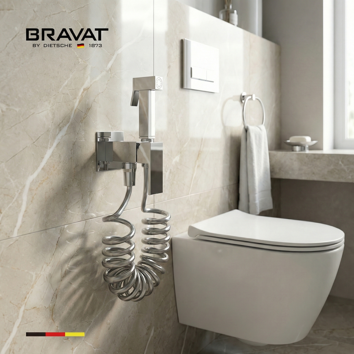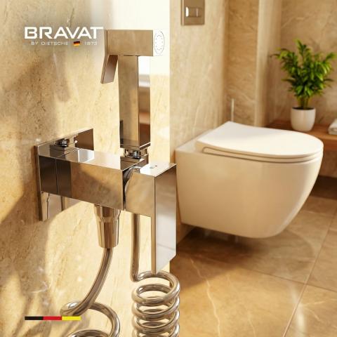 Гигиенический душ со смесителем с пружинным шлангом BRAVAT D9191CP-SW