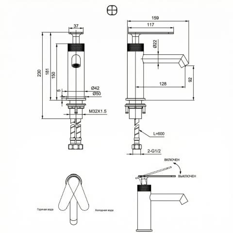 | Длина излива (от стены до окончания излива), мм | 128 |