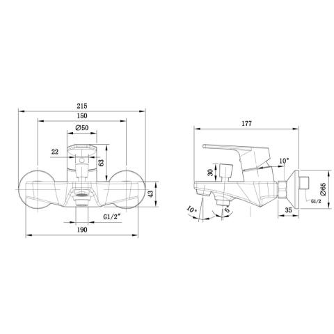 Настенный смеситель для ванны и душа BRAVAT F65299C-1-SW
