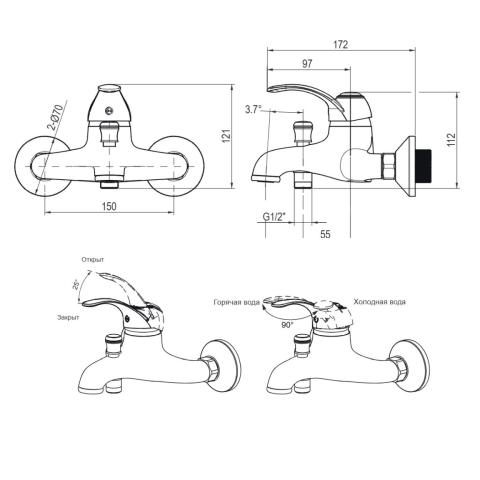 Настенный смеситель для ванны и душа BRAVAT F6794925CP-01-SW