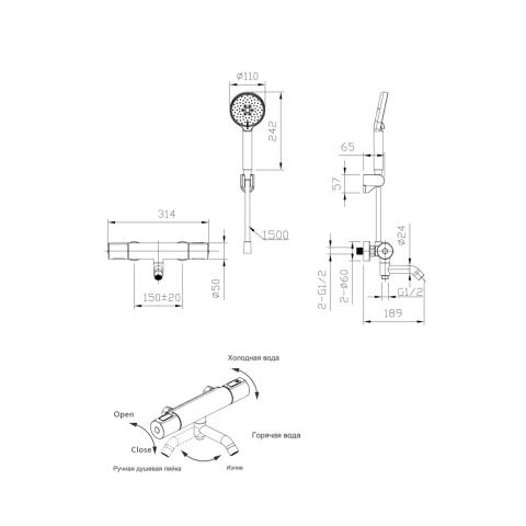 Термостатический смеситель с душем BRAVAT F6811942CP-B-SW